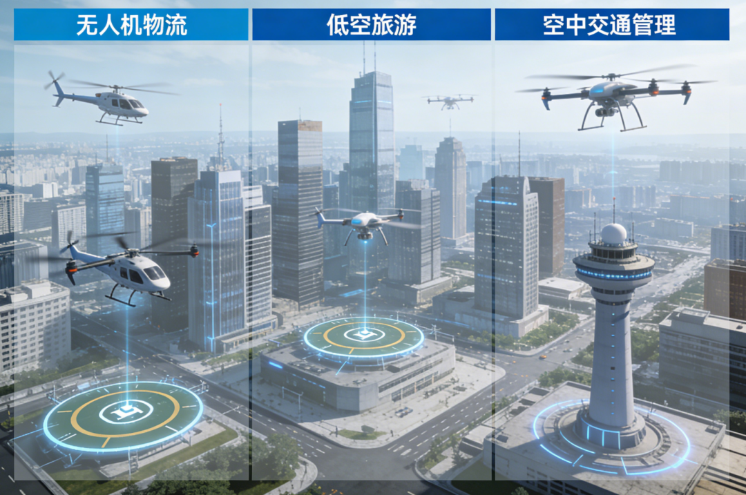 “软设施”智能化:建设城市级低空智能融合基础设施(数字塔台),整合通信、导航、监视、气象服务。